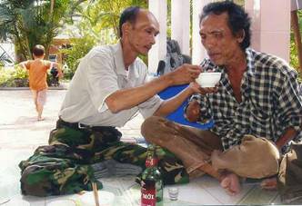 “Tôi đã về VN từ 2004, tìm đựơc 10 anh em cùng đơn vị, kể từ đó đến nay, mỗi năm vào dịp tết tôi gửi tiền lì xì 500, đâu phải đợi đến khi tiền phúng điếu 50 không nhận rồi mới chuyển qua cho thương phế binh”.